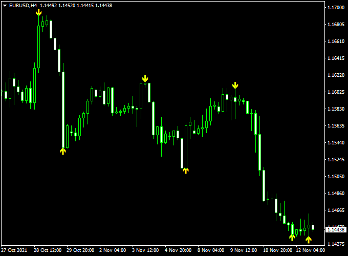 The indicator does all the hard work for you and draws the trend reversal arrows on the chart for any currency pair.