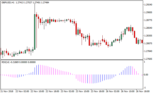 The JRSX Oscillator sits underneath in the indicator window, using advanced smoothing to track momentum and trend strength with less delay than the classic RSI.