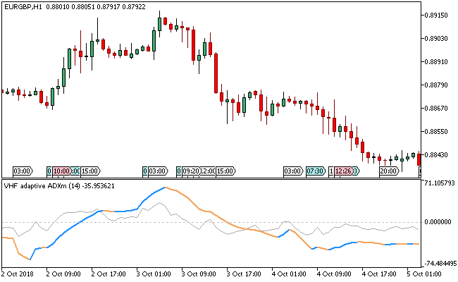 - Trend-following oscillator displayed in a separate subwindow.