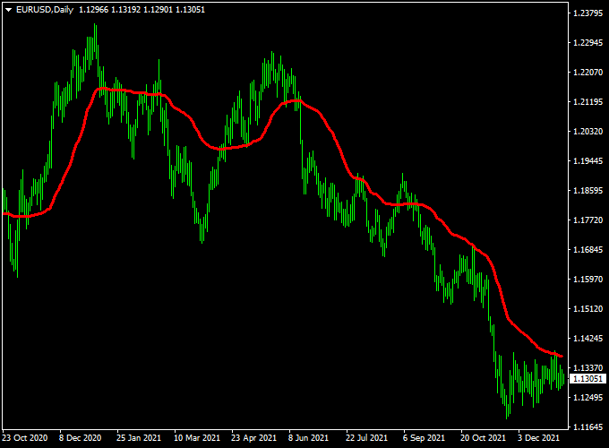 The indicator gets displayed in the main MT4 chart window in the form of a red thick signal line.