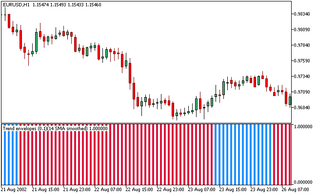 The Keltner Channel Oscillator Metatrader 5 forex indicator is a Keltner channel designed in the form of blue and red buy & sell signal histogram bars.