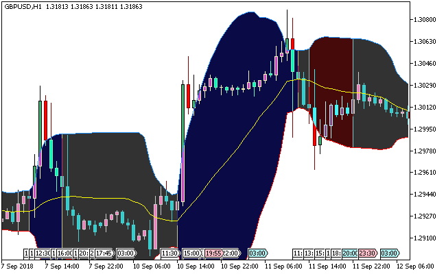 The indicator constantly adjusts its bands to the most likely range in which price will move.