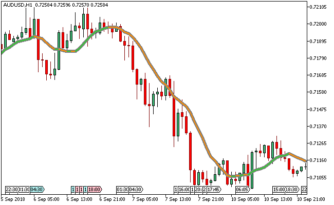The Mogalef bands Metatrader 5 forex indicator takes into account the market environment when making future projections of the high, median and low levels of the most probable price range.
