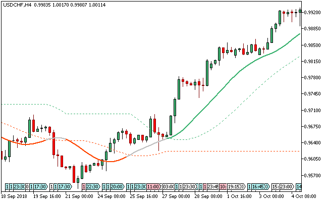 The USD/CHF H4 chart below displays the Stripped T3 Levels Metatrader 5 forex indicator in action.