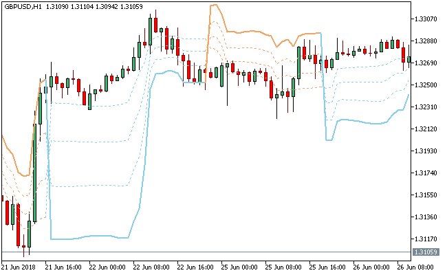 The Vidya zone Metatrader 5 Forex indicator uses three prices for its calculation: high, low and median.