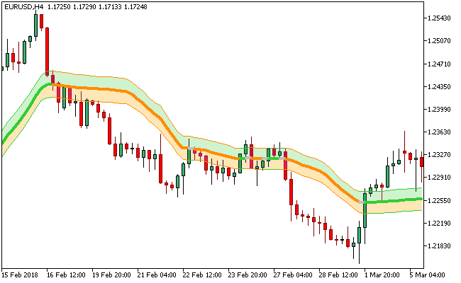 The EUR/USD H4 chart below displays the Vidya_zone Metatrader 5 forex indicator in action
